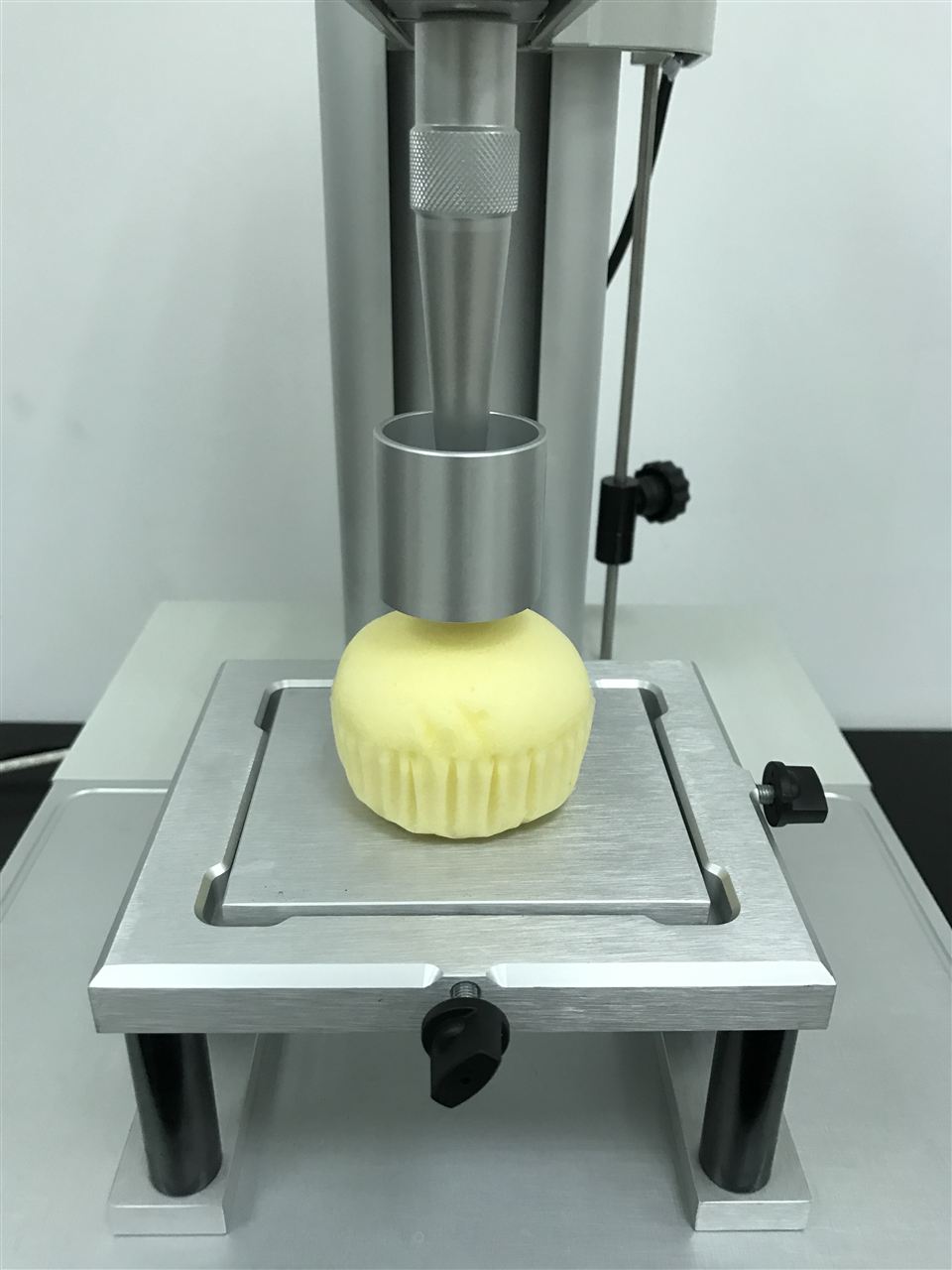 (7)P/36R柱形探头:适用于测试馒头、海绵蛋糕、吐司面包等烧烤食品的硬度(hardness)、弹性(springiness)和延展性(extension)测试。符合AACC (74-09)测试面包质地的标准方法。