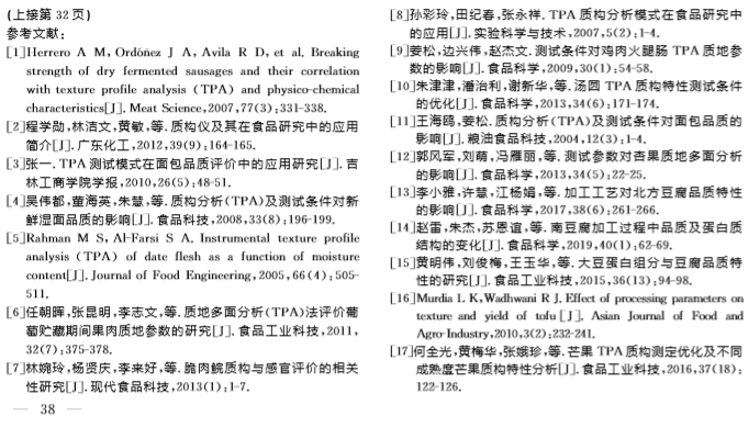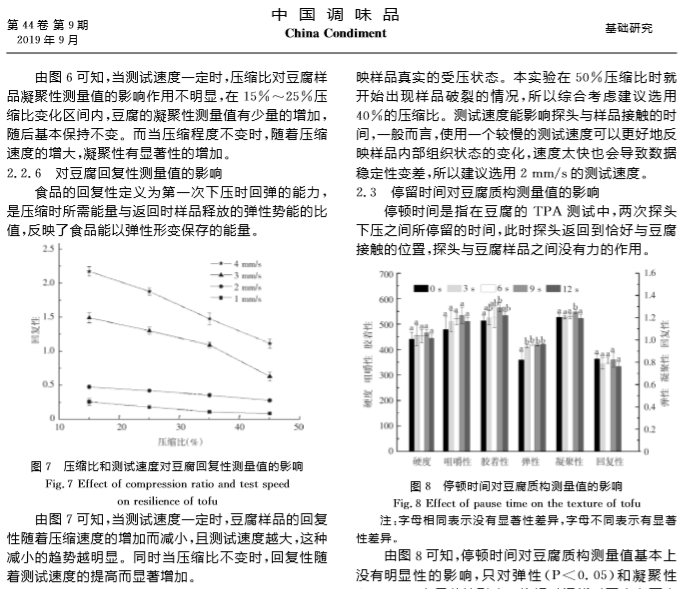 Technical articles2019年9月,《中国调味品》期刊在线发表了南昌大学题为“TPA测试条件对豆腐质构测试结果的影响”的文章,在文章中,研究人员使用上海腾拔Universal TA质构仪测定豆腐的硬度、弹性、回复性、咀嚼性等指标。