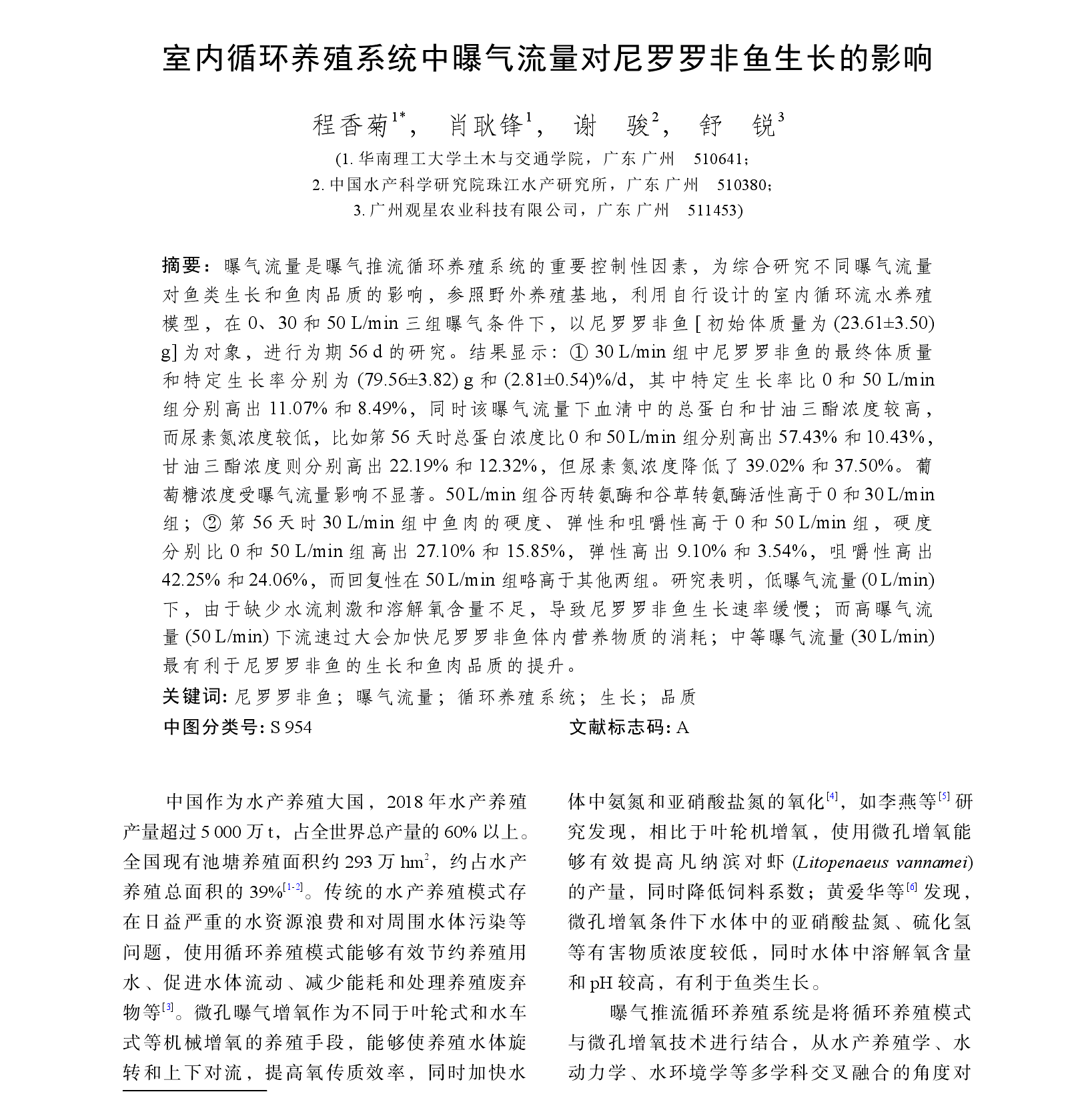 全文下载链接:室内循环养殖系统中曝气流量对尼罗罗非鱼生长的影响