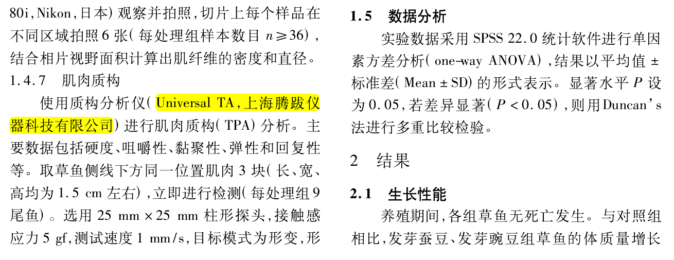 质构仪相关论文:发芽蚕豆与发芽豌豆对草鱼生长和肉质影响的比较