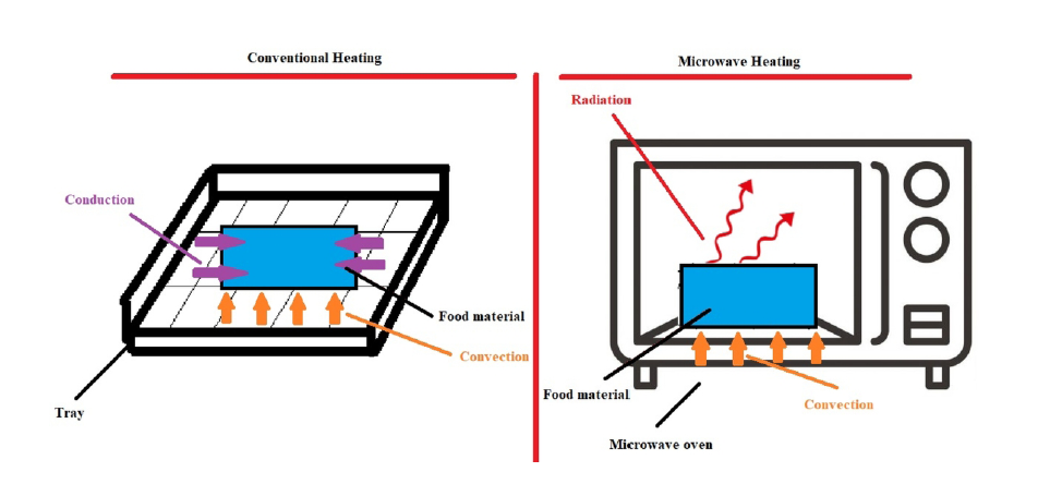 图1:传统加热和微波加热传热机理