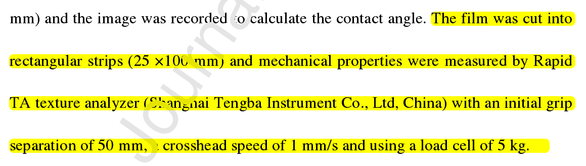 在第一篇论文中,研究人员使用上海腾拔Rapid TA质构仪测定纳米乳液基膜的拉伸强度和断裂伸长率以及蓝莓的硬度;在第二篇论文中,研究人员使用上海腾拔Rapid TA质构仪测定谷蛋白基膜的拉伸强度和断裂伸长率。