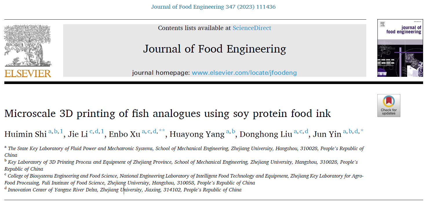 Technical articles近日,上海腾拔Universal TA质构仪助力浙江大学研究人员在国际食品期刊《Journal of Food Engineering》(Q1,IF:5.5)发表了题为"Microscale 3D printing of fish analogues using soy protein food ink"的研究论文。