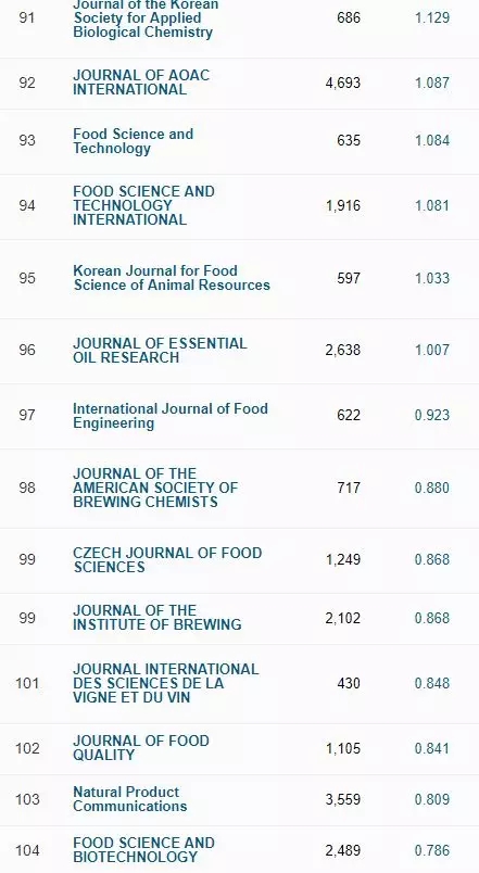其中,食品科技类期刊2017年SCI影响因子排名如下: